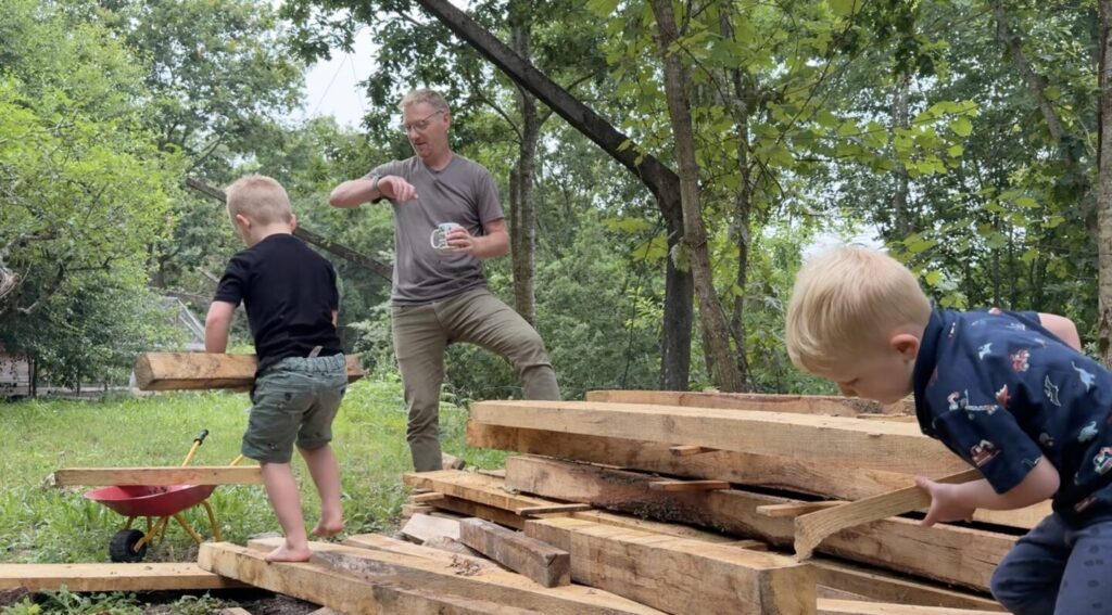 The filming began in September last year, and the production team spent more than 30 days on site with us. Sometimes it was only a day at a time, while other times the crew came for three or four days in a row. During this time, they followed us closely, documenting everything from our biggest projects to the daily routines of all four Newbys. The Help! We Bought a Village crew were so much fun to work with, and so good to the boys, letting them get involved and forming some super special memories for them of the time the TV crew came and filmed their farm life as kids!